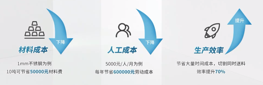 而钣金自动化形成了流水线,提高连续生产能力、缩减了人工数量、提高材料利用率、节约人工和材料成本等,为企业增加额外的利润。